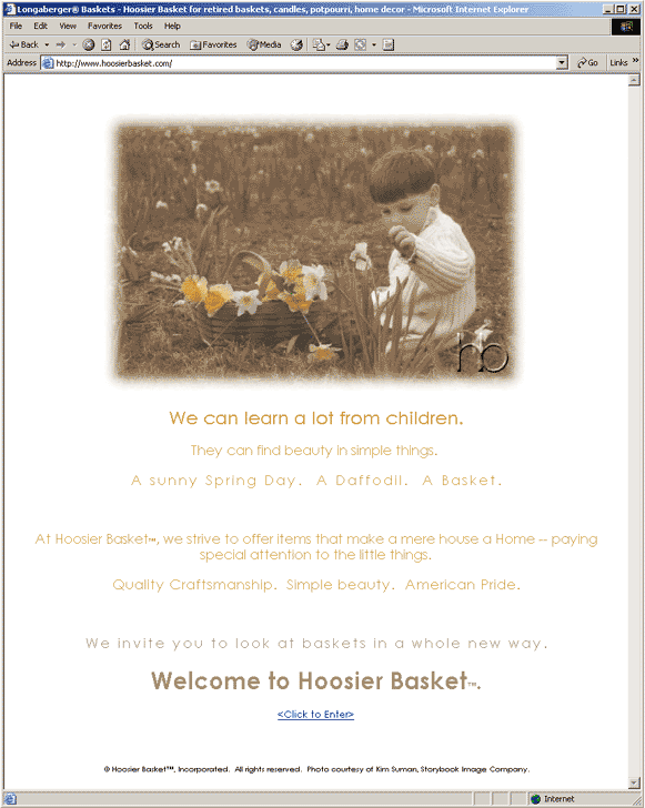 Some people refer to them as "Bridge Pages," "Portal Pages," "Jump Pages," "Gateway Pages," "Entry Pages," and several other types of "Page" names. Regardless of what they are called, a “Doorway Page” is a web page that is specifically made to work in conjunction with the Search Engines to help them rank your website much higher in their results. Doorway Pages are most often used by Search Engine Optimization Specialists as a “quick fix” to get their client’s website ranked up at the top of the Search Engine’s results instead of taking the time to optimize their client’s website correctly. A Doorway Page will most often be a web page without any frames, scripting, or coding of any type. It is usually just a plain, clean cut web page with maybe one graphic. For example, it may have your company’s logo for identification purposes along with a link down at the bottom that says something like “To enter our website Click Here;” as shown in the example below.